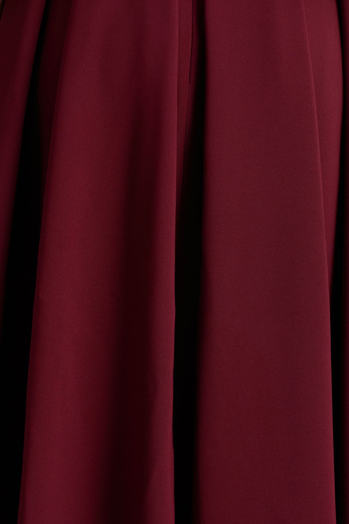 Say hello to Cosima, a timeless midi designed with a modern twist. Crafted from our premium burgundy crepe, this chic style is timeless romance at its finest. Featuring a flattering bardot neckline with elegant draped sleeves for a romantic finish. The skater skirt adds playful movement, while the midi length keeps the silhouette effortlessly sophisticated. Perfect for occasions that call for elegance with ease.