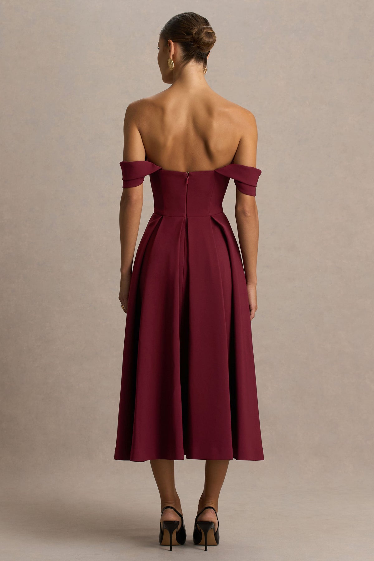 Cosima | Burgundy Bardot-Neck Midi Dress