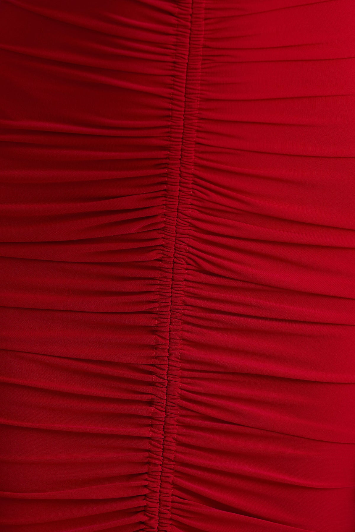 Jewel | Red Plunge-Neck Maxi Dress With Front Split and Ruched Detaili