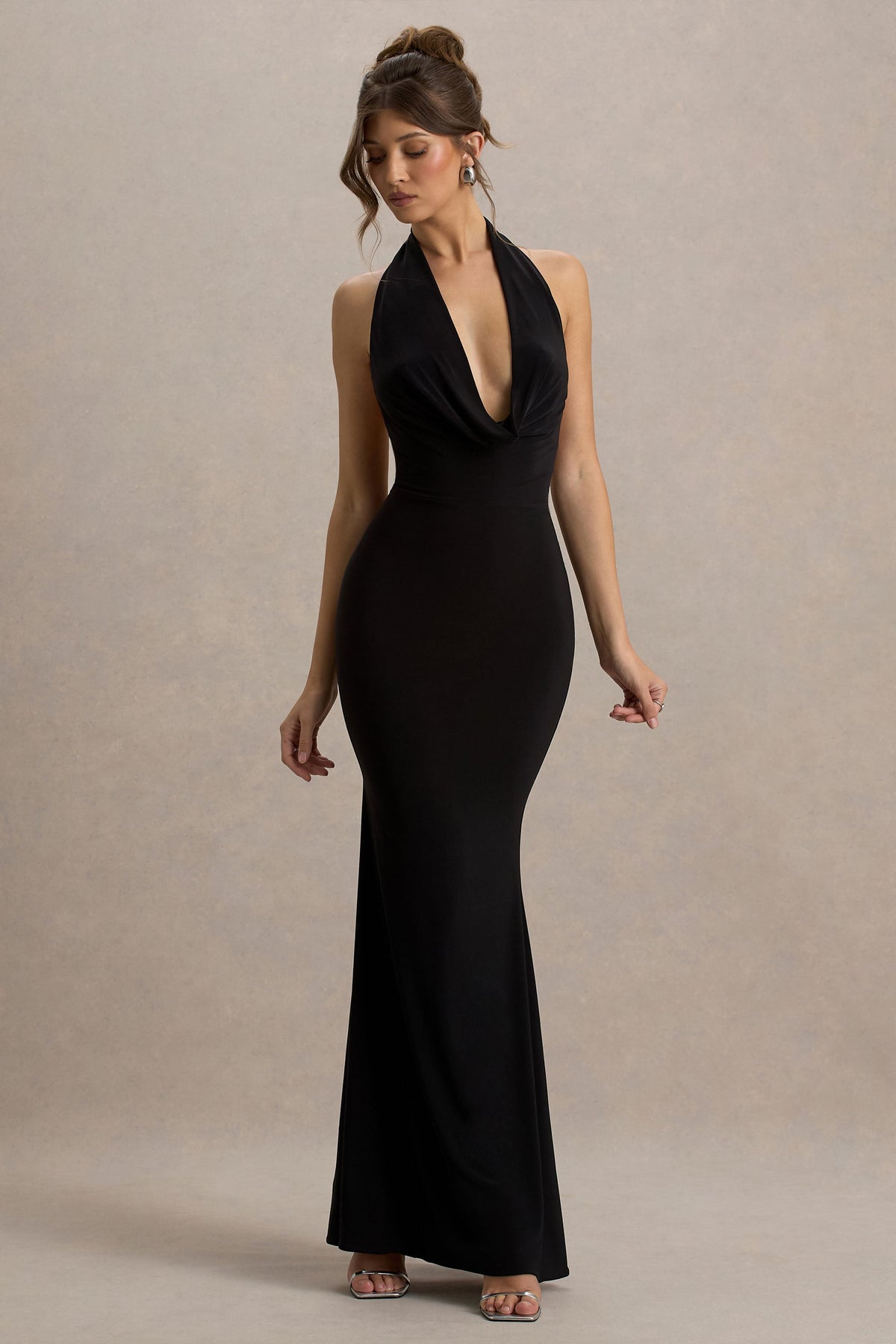 Milani | Black Backless Cowl Neck Fishtail Maxi Dress