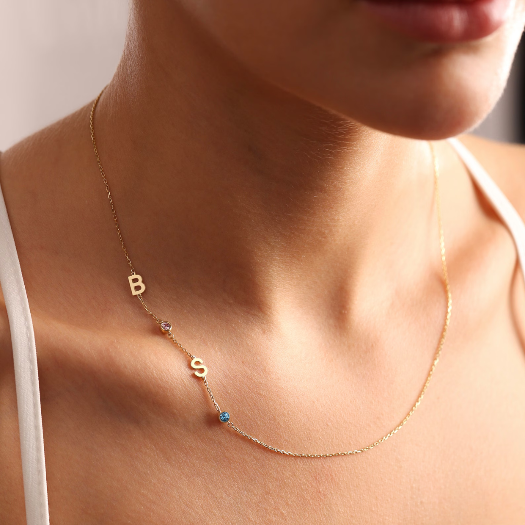 Create a unique BIRTHSTONE necklace by combining the letters and birthstones of your choice. Arrange the elements in any order to design a personal piece of jewelry full of meaning and emotion. You can include up to 8 elements to tell your story.