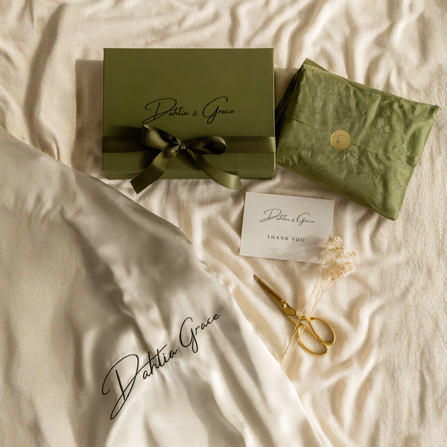 Every Dahlia & Grace order is wrapped with care to create an experience that feels personal and memorable. From signature boxes and soft tissue paper to delicate ribbons and gold accents, each detail is intentionally chosen to reflect the elegance of our brand.