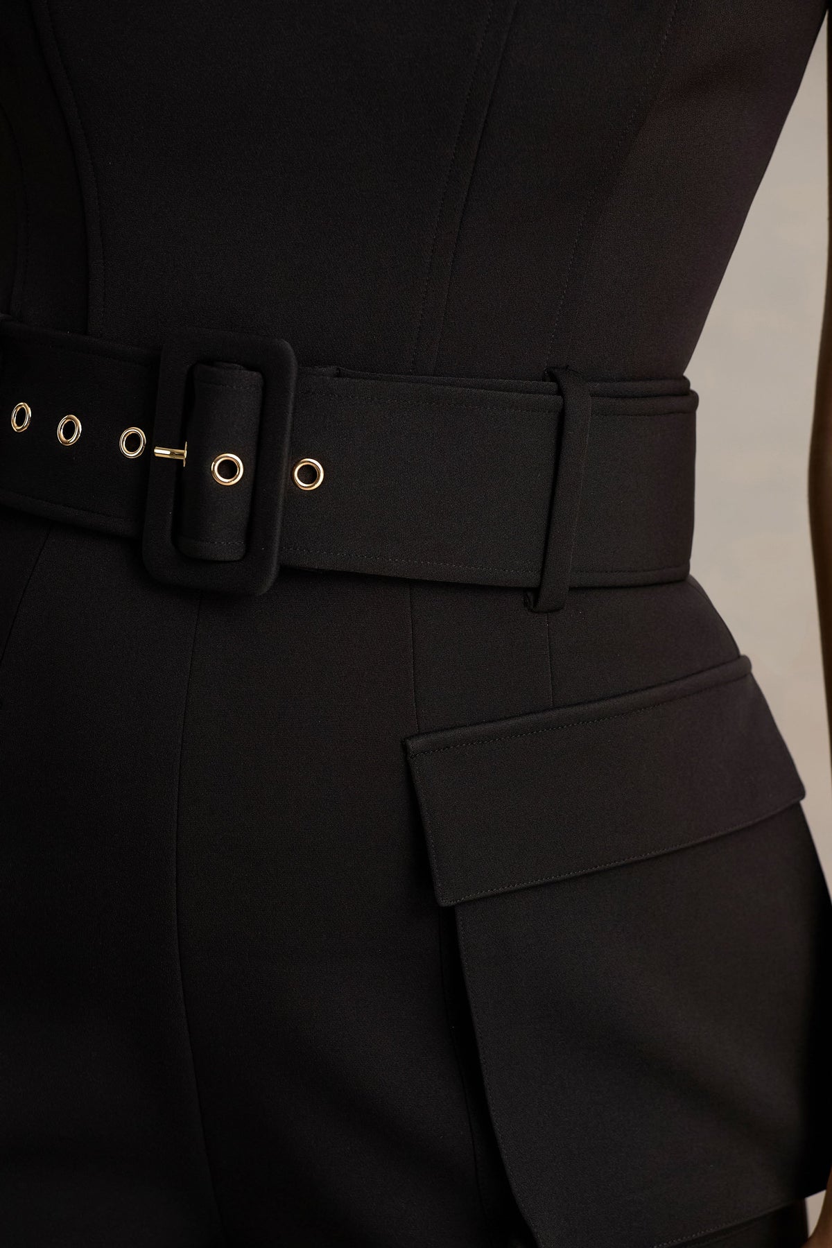 Step into sleek sophistication with Solice, a timeless piece that embodies effortless glam with an edge. Crafted from our premium black stretch crepe, this jumpsuit features a flattering square neckline and a daring open back detail that turns every entrance into a statement. Functional front pockets add a touch of modernity, while the tailored fit ensures you look polished from every angle. Perfect for nights out, parties, or any occasion where you want to make a chic, confident impression.